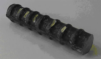 The damage for reinforcing steel (Dia. 25mm) by using EHAC-130A (with reinforced sensor) |